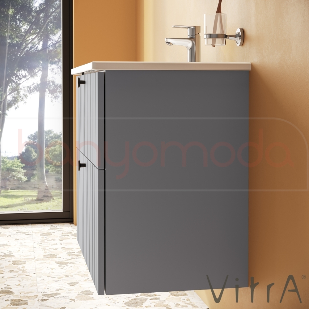 Vitra Root Groove Çift Çekmeceli Lavabo Dolabı, 80 cm, Mat Gri (Köşeli Lavabo Dahil)