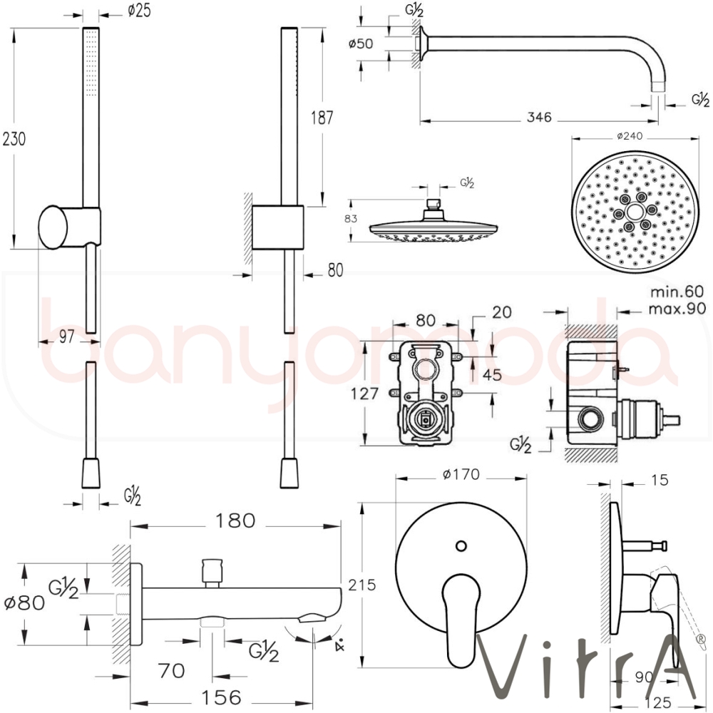 | Uyarı ve Genel Açıklamalar: | Root Round ankastre banyo bataryası (V-Box sıva üstü grubu) (A42727XX) V-Box (sıva altı grubu) (A41949) Origin 1F el duşu takımı (A45543XX) Bliss 2F duş başlığı (A45742XX) Duvardan dirsek (A45652XX) Root Round çıkış ucu (el duşu çıkışlı) (A43126XX) Soft Bakır sete dahildir. |