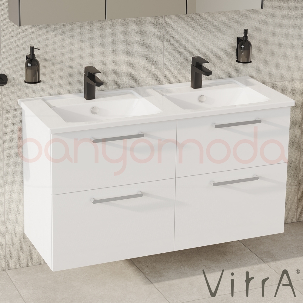 Vitra Root Flat Dört Çekmeceli Lavabo Dolabı, 120 cm, Parlak Beyaz (Köşeli Çift Lavabo Dahil)