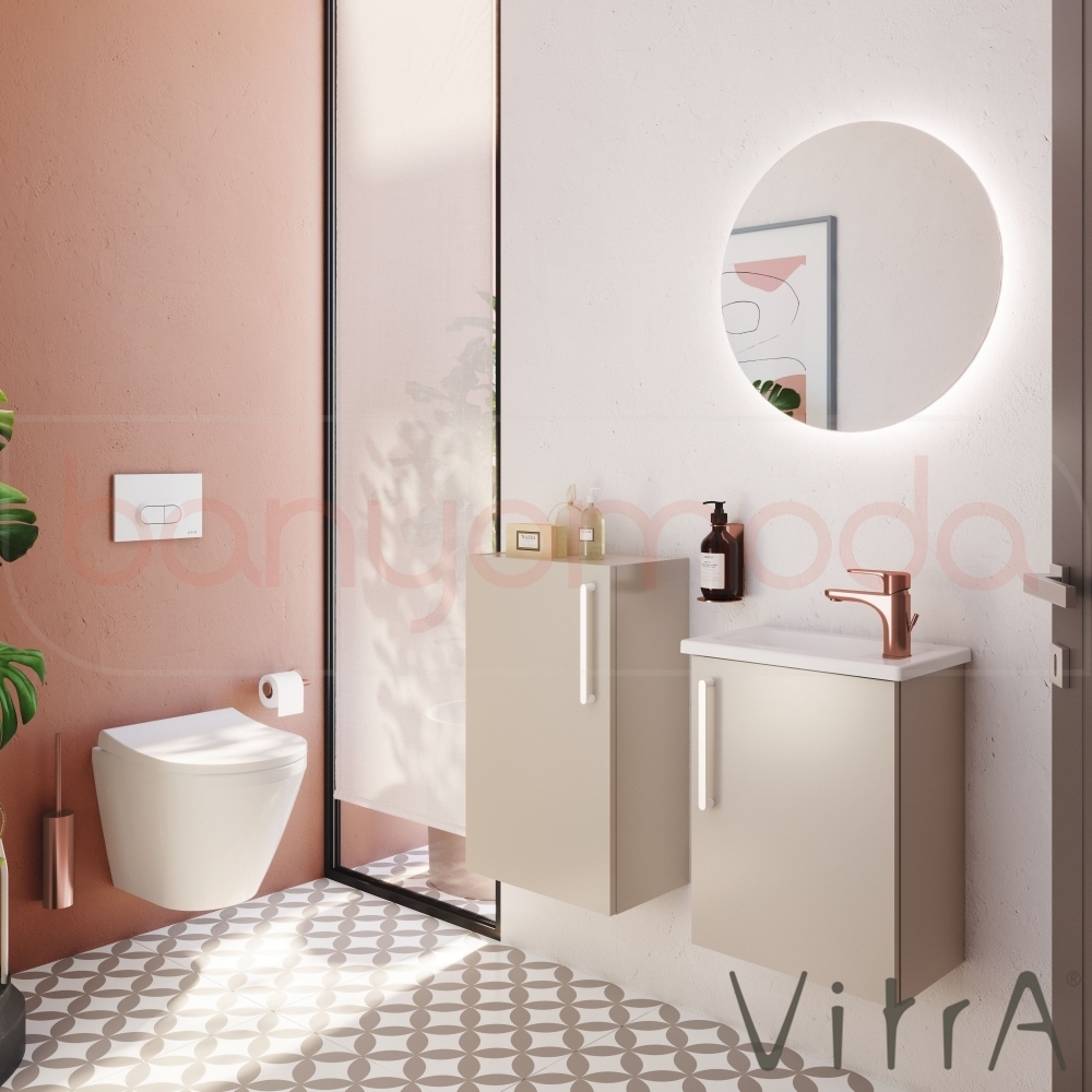 Vitra Root Flat Kapaklı Kompakt Lavabo Dolabı, 45 cm, Parlak Sahra Beji (Köşeli Lavabo Dahil-Sağ)