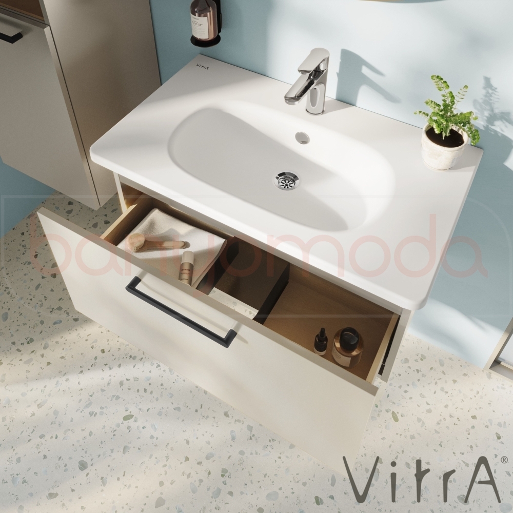 Vitra Root Flat Tek Çekmeceli Lavabo Dolabı, 80 cm, Parlak Sahra Beji (Yuvarlak Lavabo Dahil)