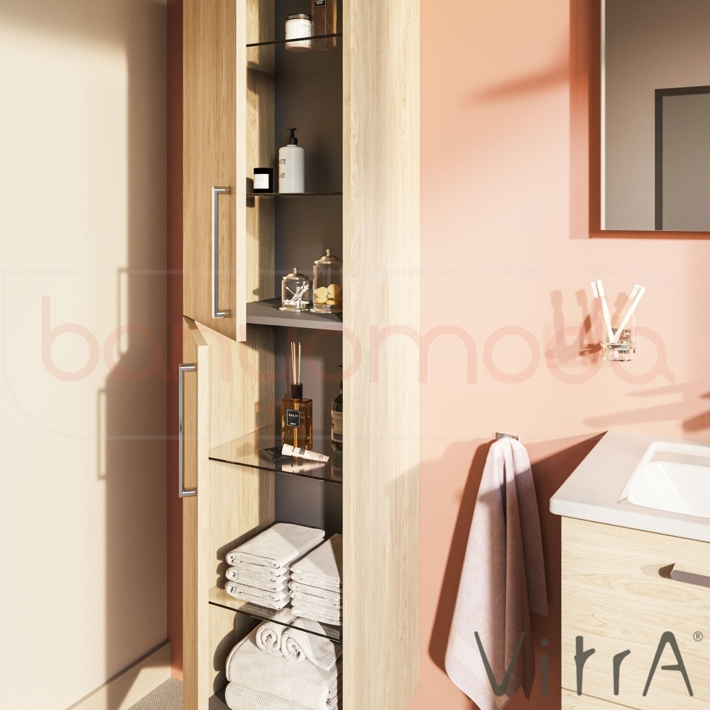 Marka: Vitra Ürün Adı: Vitra Root Flat Boy Dolabı, 40 cm, Doğal Meşe Ürün Kodu: 66223 Seri: Root Flat Renk: Doğal Meşe Ölçü: 42x36x180 cm Montaj Tipi: Asma Kapak Özelliği: Kulplu, Yavaş Kapanır Gövde Malzemesi: Melamin Kapak Malzemesi: Melamin Yetkili Servis Hizmeti: Var Ücretsiz Montaj: Yok Garanti Süresi: 2 yıl Üretim Yeri: Türkiye Uyarı ve Genel Açıklamalar: Krom Bar Kulp dahildir; siyah kulp istenirse 66521, beyaz kulp istenirse 66772 kodundan sipariş edilebilir. Kapak açılım yönü montaj esnasında sağ/ sol istenen yönde ayarlanabilir. Cam raflı.