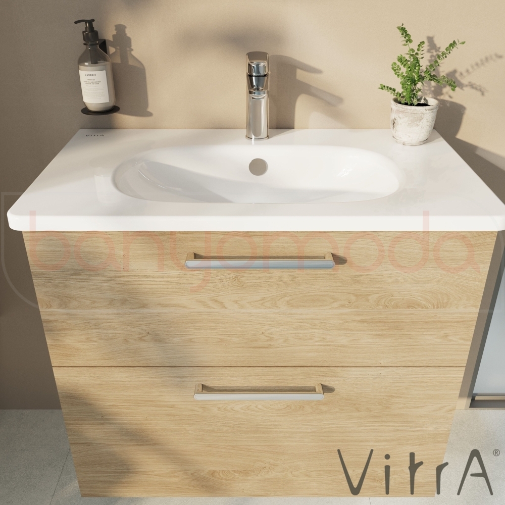 Vitra Root Flat İki Çekmeceli Lavabo Dolabı, 80 cm, Doğal Meşe (Yuvarlak Lavabo Dahil)