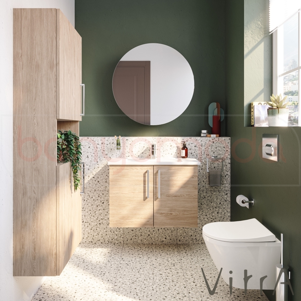 Vitra Root Flat Kapaklı Dar Lavabo Dolabı, 80 cm, Doğal Meşe (Köşeli Lavabo Dahil)