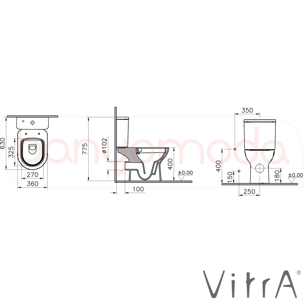Su Tasarrufu: 3-6 litre Pis Su Çıkış: Universal Taharet Borusu Giriş: Standart Taharet Borusu: Var (Gizli-Standart) Yetkili Servis Hizmeti: Var Ücretsiz Montaj: Yok Garanti Süresi: 10 yıl Üretim Yeri: Türkiye Ölçüler: 360x630x400 mm Uyarı ve Genel Açıklamalar: 208-XXXR009, 210-XXXR009, 231-XXXR009, 85-XXXR009, 110-XXXR009, 131-XXXR009 kodlu duroplast, metal menteşeli, yavaş kapanır, kolay sök-tak, 210-XXX-009, 231-XXX-009, 85-XXX-009, 110-XXX-009, 131-XXX-009 kodlu duroplast, metal menteşeli, yavaş kapanır, standard, 121-003-909 kodlu nuvoplast, plastik menteşeli, yavaş kapanır, kolay sök-tak, 121-003-901 kodlu nuvoplast, plastik menteşeli, standart, kolay sök-tak klozet kapakları ile uyumludur, ürüne dahil değildir. Ayrıca sipariş verilmelidir. 7927L003-1253, 7929L003-0108, 7929L003-1253, 7925L003-0108, 7925L003-1253, 7927L003-0108 kodlu rezervuarlar ile uyumludur, ürüne dahil değildir. Ayrıca sipariş verilmelidir. Takım klozet, SmoothFlush, arkası açık, 63 cm. Universal çıkışlı, yandan yere montaj. Taharet borusu girişi standart uygulamalı. Garanti Bilgisi:10 Yıl Vitra garantisi -