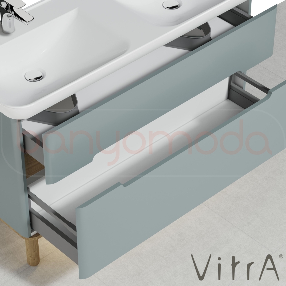 Vitra Sento Çift Çekmeceli, Çift Lavabo Hazneli Lavabo Dolabı, Ayaksız, 130 Cm, Mat Fiyord Yeşili