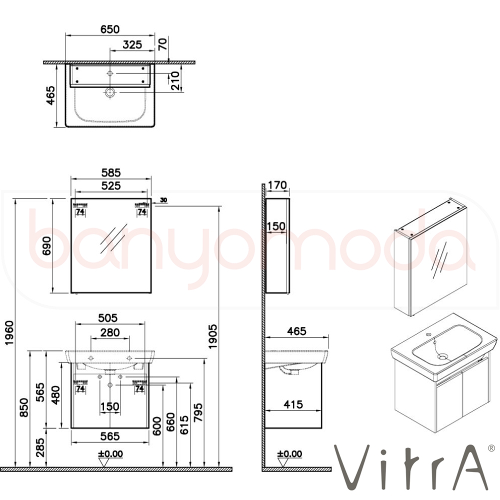 | Uyarı ve Genel Açıklamalar: | 72278 kodlu üründür. 5522B003-0001 kodlu S20 lavabo dahildir. Dolaplı ayna sete dahildir. Boy dolabı hariçtir. 56342 ve 56344 kodlu Vitra Step demonte boy dolabı ile uyumludur. Yavaş kapanan kapaklar, MDF gövde ve kapaklar ve suya dayanıklı termoform kaplama. |