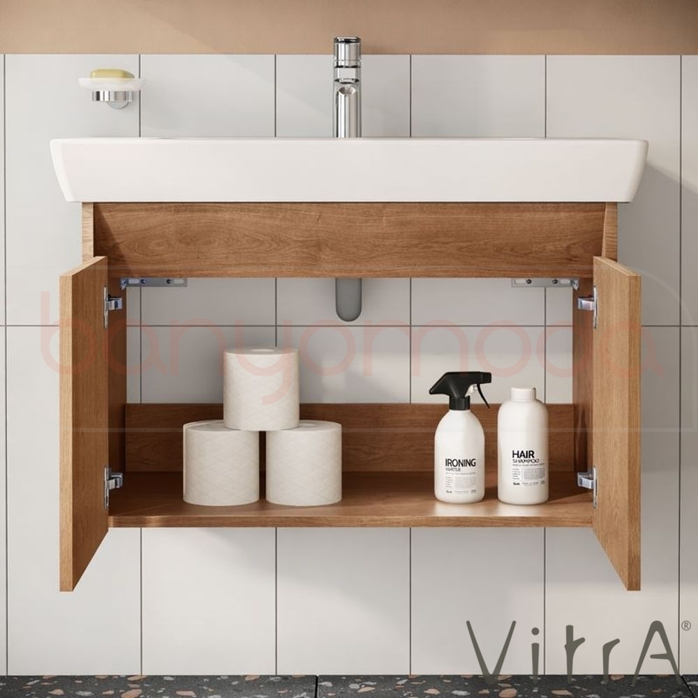 Vitra Step Lavabo Dolabı Demonte Set, 85 cm, Altın Meşe (Lavabo Dolabı, Dolaplı Ayna)