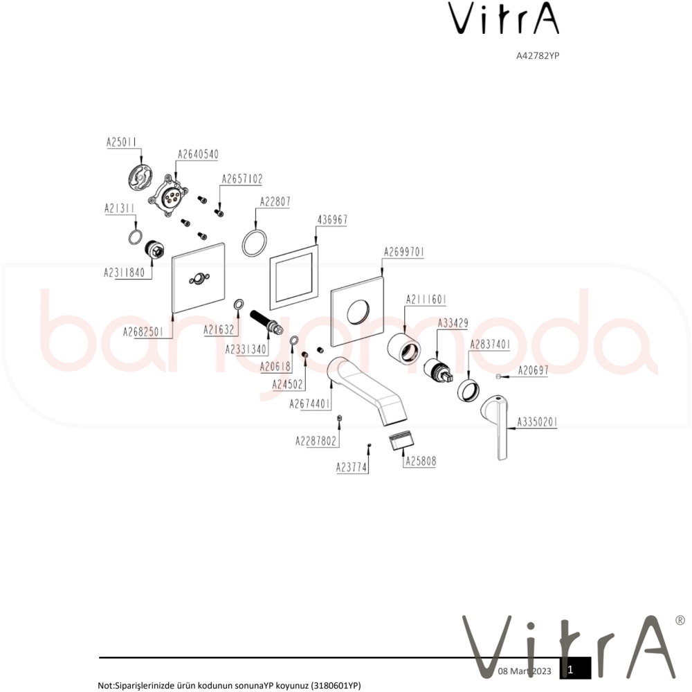 | Uyarı ve Genel Açıklamalar: | Kaba inşaat sırasında A42230 kullanılarak sıva altı montajı yapılmalıdır. Sıva altı grubu ürüne dahil değildir. Ayrıca sipariş edilmelidir. Çıkış ucu uzunluğu 150 mm’dir. Cache (gizli) perlatör. Özel debi kısıcılı perlatör sayesinde max. 5 L/dk su akışı sağlanmaktadır. Yüksek dayanımlı 0 pirinç kartuş. Teflon kaplı seramik diskli kartuş ile uzun yıllar konforlu aç-kapa |