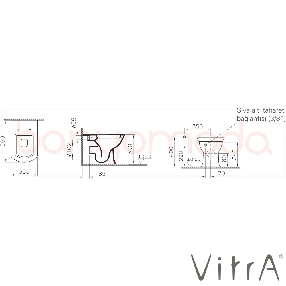 | Uyarı ve Genel Açıklamalar: | Su tasaruflu ince gömme rezervuarlar ile kullanıldığında su tasarrufu sağlar. 124 ve 125 kodlu Vitra Valarte klozet kapakları ile uyumludur. |