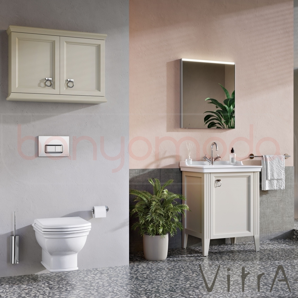 Vitra Valarte Kapaklı Etajerli Lavabo Dolabı, 65 cm, Mat Fildişi (Lavabo Dahil-Krom Kulplu Sağ)