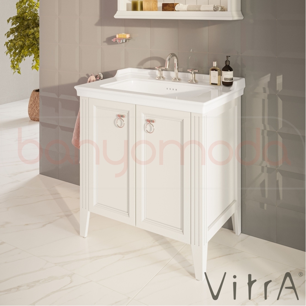 Vitra Valarte Kapaklı Etajerli Lavabo Dolabı, 80 cm, Mat Beyaz (Lavabo Dahil-Krom Kulplu)