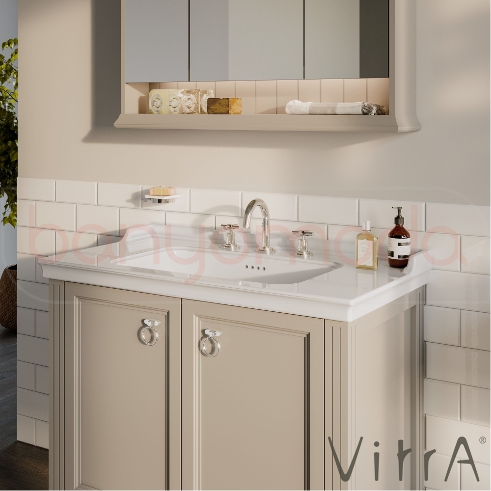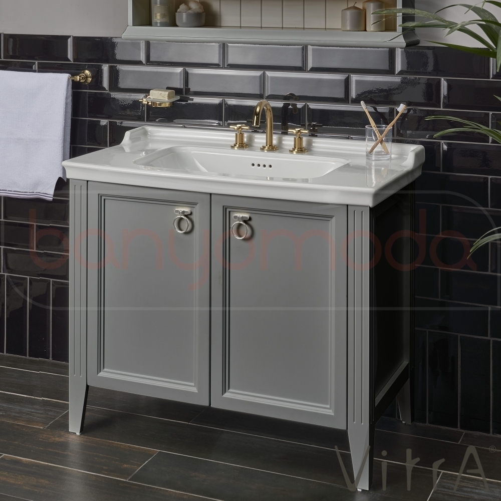 Vitra Valarte Kapaklı Etajerli Lavabo Dolabı, 80 cm, Mat Gri (Lavabo Dahil-Krom Kulplu)