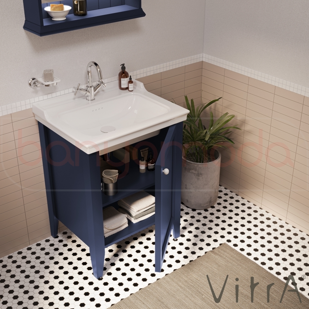 Vitra Valarte Neo Kapaklı Etajerli Lavabo Dolabı, 65 cm, Çelik Mavisi (Sol)