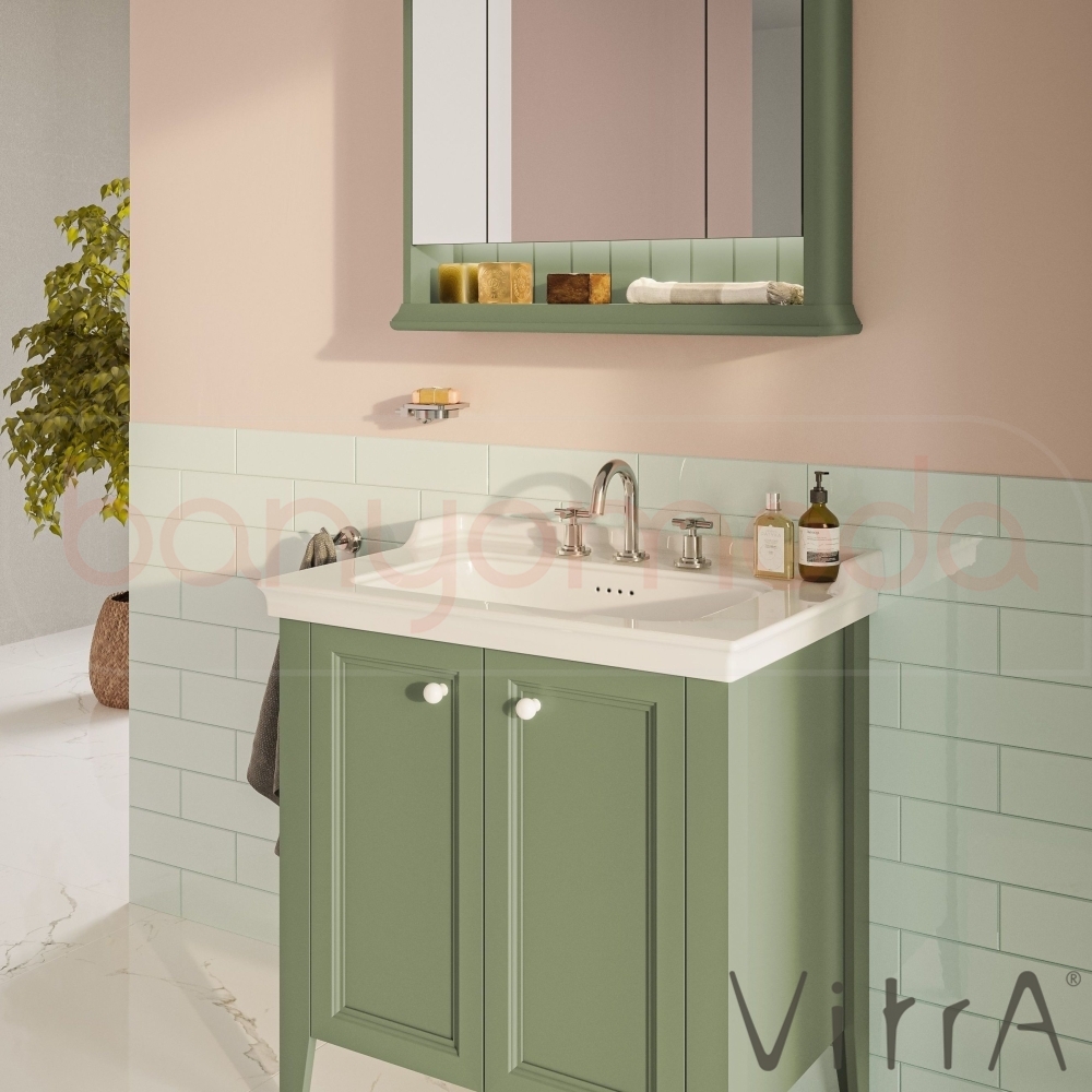 Vitra Valarte Neo Led Aydınlatmalı Dolaplı Ayna, 80 cm, Retro Yeşil